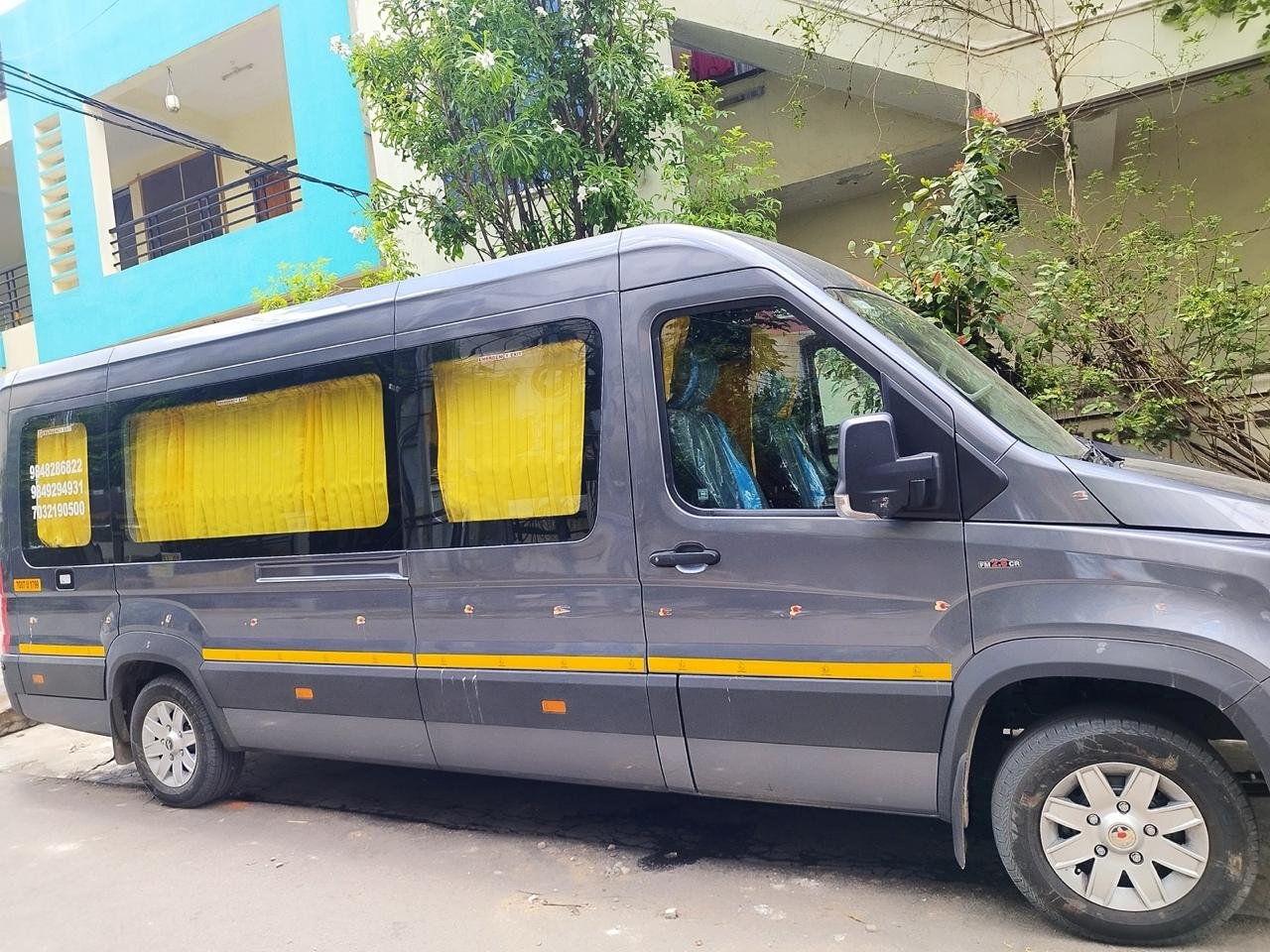 Force Urbania on Rent in Hyderabad is the ultimate choice for travelers who seek a premium, business-class experience combined with the convenience of group travel. Offered by Sri Vengamamba Tours & Travels, the Force Urbania represents a new generation of luxury vans, perfectly suited for corporate clients, families, wedding groups, VIP movements, and long-distance travel. With seating capacities ranging from 10 to 17 passengers, Urbania offers unmatched comfort through spacious, reclining leather seats, individual AC vents, ambient LED lighting, and a high-roof design that provides extra headroom and a relaxed atmosphere. Whether you’re planning a high-profile guest pickup from Rajiv Gandhi International Airport, a corporate offsite in the outskirts, or a multi-day pilgrimage to destinations like Tirupati, Srisailam, or Shirdi, Force Urbania ensures a smooth, quiet, and comfortable journey for everyone onboard. Its modern features—including ABS, EBD, cruise control (in select models), noise-insulated interiors, and advanced suspension—make it a standout option for luxury travel in both city and highway conditions. Sri Vengamamba Tours & Travels provides Urbania vans that are immaculately maintained, fully insured, and driven by experienced, uniformed chauffeurs who prioritize safety, punctuality, and customer service. We offer flexible rental options—hourly, daily, and multi-day packages—tailored to your itinerary, with transparent pricing and no hidden costs. Whether you’re transporting executives to an event, welcoming international guests, or taking your family on a comfortable vacation, booking a Force Urbania in Hyderabad through us guarantees elegance, efficiency, and ease throughout your journey.