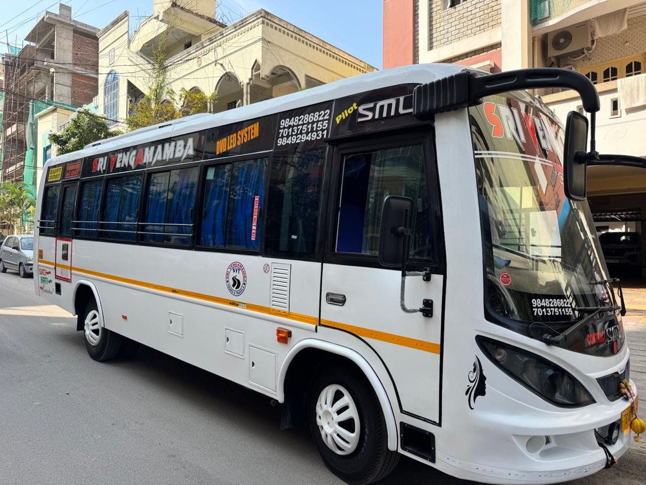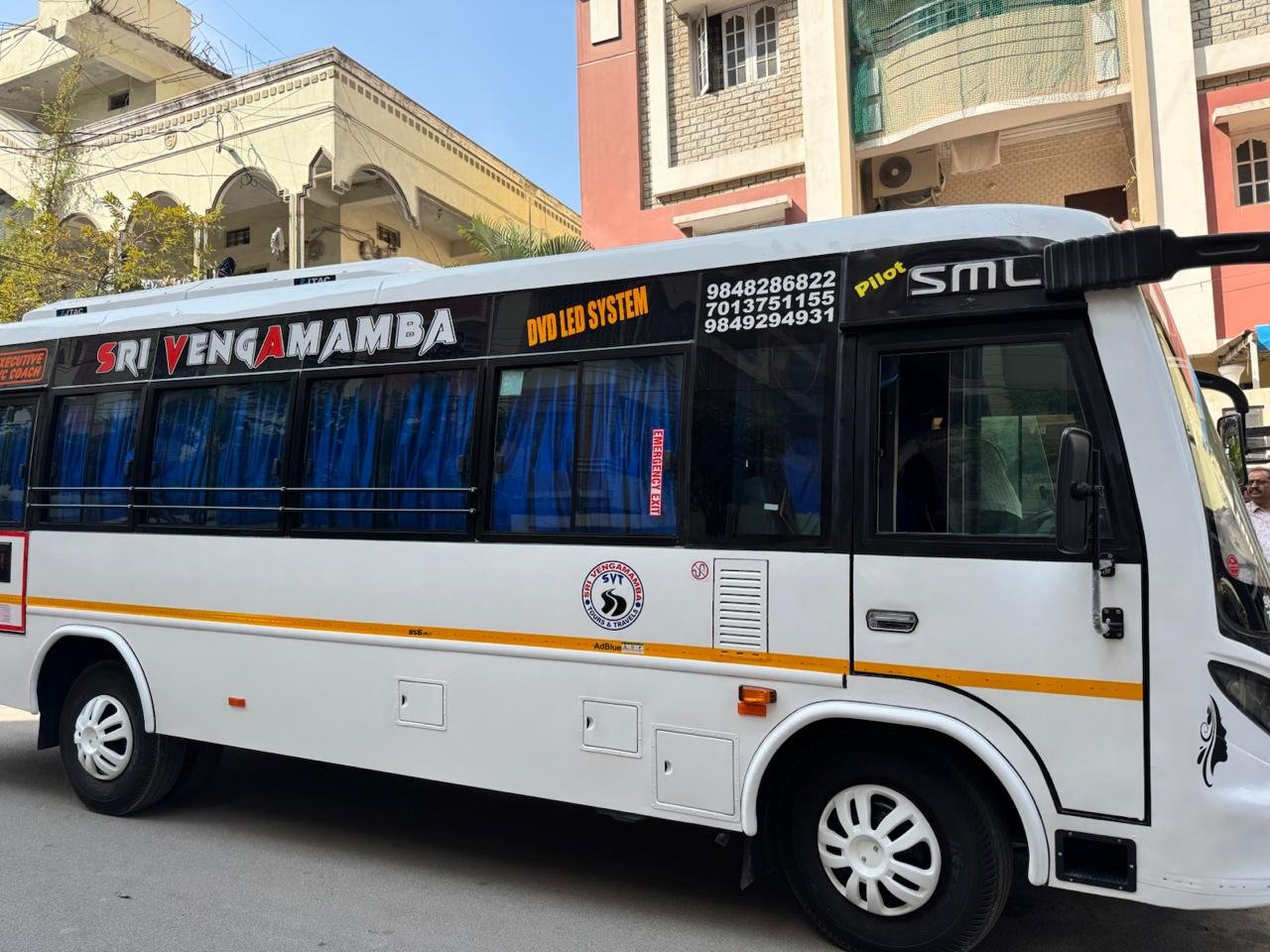 If you’re planning group travel in or around Hyderabad and need a reliable, spacious, and cost-effective transportation option, Mini Bus on Rent in Hyderabad is the perfect solution. At Sri Vengamamba Tours & Travels, we specialize in providing mini buses that cater to various group sizes—ranging from 18 to 35 seaters—ideal for corporate events, weddings, school or college excursions, religious pilgrimages, city tours, and outstation trips. Our mini buses are well-maintained, air-conditioned, and equipped with comfortable push-back seats, ample legroom, high ceilings, and generous luggage space to ensure a smooth and enjoyable ride for every passenger. Whether you’re navigating the bustling streets of Hyderabad or heading to serene destinations like Srisailam, Tirupati, or Vijayawada, our mini bus rentals come with experienced, professional drivers who are well-versed in local and intercity routes. We offer flexible booking options, transparent pricing, and personalized travel packages tailored to your itinerary. With a strong focus on safety, punctuality, and customer satisfaction, Sri Vengamamba Tours & Travels has become a trusted name in group transportation. Our fleet includes both standard and luxury mini buses, so whether you’re organizing a simple family trip or a high-profile corporate movement, we have the right vehicle to suit your needs. Book a mini bus with us and experience hassle-free group travel with unmatched comfort and efficiency.